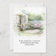 A dreamy watercolor garden scene unfolds beside a charming cottage, surrounded by lush greenery and soft pink blossoms takes center stage on this birthday card. A white picket fence frames a peaceful patio where delicate wrought-iron seating is dressed in rosy cushions, inviting quiet moments of joy and reflection. Sunlight filters through flowering trees, casting a warm, gentle glow across the stone path, while a bird glides gracefully overhead. The scene feels serene, hopeful, and full of gentle beauty—perfect for celebrating a birthday filled with peace, happiness, and sweet new beginnings. Personalize the front with recipients name and add a special message - the back gets another special message.