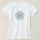 Patterned monogram workout t-shirt featuring your single initial, in pink serif font with a green border, sitting on top of a modern geometric pink green patterned circle. A very stylish workout top for women! This t-shirt was designed to be worn on top of the matching legging available here: https://www.zazzle.com/stylish_modern_geometric_green_pink_leggings-256476249754325733.