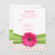 Pretty green and pink polka dot pink gerbera daisy bat mitzvah reply (rsvp) card. The text on this card is fully customisable. To change the text, use the personalise options. For more extensive text changes, such as changes to the font, font colour, or text layout, choose the customise it option. This hot pink and spring green polka dot invitation is currently customised as a reply card, but it would work well as a reception, direction, accommodation, and/or general information insert card. Note: This is a flat printed design without any raised or 3D embellishments.