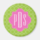 Pink + Green Quatrefoil Monogram Magnet