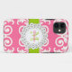 Girly Personalised Pink and Green Swirls Floral printed iPhone 5 Case-Mate Case. Make a fashion statement with this monogram initial and name printed on a circular floral design with a green line on a pink damask pattern this hard shell iPhone 5 case.