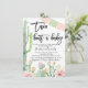 Pastel coloured fiesta themed taco bout a baby baby shower invitation featuring flowering cactus and Mexican banner in pink and mint. Ideal for someone looking for a girl's taco or fiesta themed baby shower invitation and sure to set the scene for a fiesta themed baby shower.