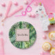 Pink & Green Tropical Leaves Sweet 16 Party Paper Plate