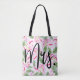 Pink Green Tropical Oasis Botanical BRIDE / MRS. Tote Bag