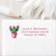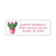 A colourful address label designed with a watercolor graphic of a green cactus with pink blooms, and growing in a matching pink pot. The mailing details is set to the right of the image in a coordinating shade of pink for a fun, colourful look. A simple way to add a bit of fun and colour to anything that needs an address label.