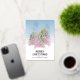 Pink Green Watercolor Christmas Tree Artistic Foil Holiday Card. Festive watercolor drawing of pastel pink and green Christmas trees with snow and a Merry Christmas wish in real silver foil. Customise the text on the front and the message on the backside.