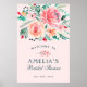 Pink Green Watercolor Floral Bridal Shower Welcome Poster