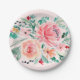 Pink Green Watercolor Floral Paper Plate