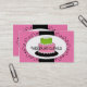 Wedding Cake Bakery Business Cards design by Elke Clarke ©2012. Pink and Green Floral Wedding Cake on a pink floral background with black accents. More designs available at strictlybusinesscards.blogspot.com. Customisable with your information and background colour.
