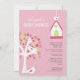 Pink Green White Birds & Tree Baby Shower Invite