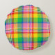 Pink Green Yellow Madras Plaid Design Round Cushion