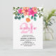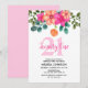 Stunning watercolor pink and orange spring flora arrangement with beautiful greenery birthday invitation card.