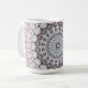 This delicate mandala design blends soft shades of pink, grey, and white into an elegant display of symmetry and flow. Each ring radiates outward from the centre with ornate floral and geometric motifs, creating a mesmerising kaleidoscopic rhythm. The pastel colour palette gives the design a gentle and calming presence, while the detailed linework adds depth and sophistication. Balanced and harmonious, this piece evokes timeless ornamental beauty with a subtle, modern touch.