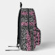 This cool customisable back-to-school backpack showcases an eye-catching design of abstract digital pixelated vertical stripes in shades of pink, grey, and black. The striking combination of pink and grey stripes set against a sleek black background creates a trendy and stylish look, making it a perfect accessory for students who want to stand out. With its unique striped pattern, this backpack not only offers functionality but also adds a fashionable touch to any school outfit, making it an ideal accessory for everyday use.