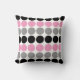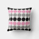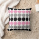 Pink, Grey, and Black Retro Circles Pattern Pillow. Modern, fun, and chic!