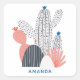 Pink grey cactus. Modern abstract cacti succulent Square Sticker