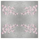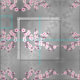 Pretty pink cherry blossom pattern on a shimmering grey background. The floral Sakura branches are arranged in geometric forms.