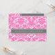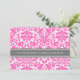 Bridal luncheon invitations in elegant fuchsia hot pink, dark charcoal grey and white classic vintage floral damask pattern, chic and feminine, customisable with your shower details. Also available in thank you cards and invitations for the bridal party.
