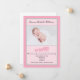 Pink Grey Elephants Baby Girl Photo Birth Announcement