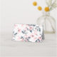 Folded place card with an elegant pattern made with a watercolor illustration of pink flowers with blue-grey leaves and stems.