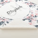 A sherpa blanket with an elegant pattern made with a watercolor illustration of pink flowers with blue-grey leaves and stems.