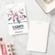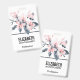 Name badge with a pretty watercolor illustration of pink flowers with grey leaves on a single stem. A modern elegant botanical design.