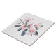 A ceramic tile with a pretty watercolor illustration of pink flowers with grey leaves on a single stem. A modern elegant botanical design.