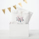 Favour bags with a pretty watercolor illustration of pink flowers with grey leaves on a single stem. A modern elegant botanical design.