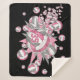 This cute girl's volleyball themed Sherpa fleece blanket features an "explosion" of pink, grey and white volleyballs in varying sizes and pink and grey star shapes and white polka dots on the pink star, all on a customisable black background - the volleyballs' pink and grey panels are blended with a girly, floral kaleidoscopic pattern - customise with player's name and jersey number - katz_d_zynes