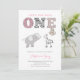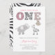 Pink Grey Jungle Safari First Birthday For Girl Invitation