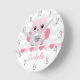 I bought the clock as a 'first time' grandmother. When I opened the package, I cried. the workmanship, material, color and the opportunity to personalize it was just perfect. I know that my grandson will be able to quickly learn to identify numbers, count and tell time! What a keepsake! I was totally happy with the printing, color choice and overall presentation of the clock!