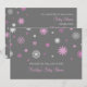 Personalised baby shower invitations for winter or Christmas holidays in cute and modern bright baby pink, charcoal grey and white fun and festive snowflakes pattern. Customisable with your text, contact us to request a colour change.