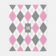 pink grey white argyle plaid monogrammed fleece blanket