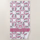 This cool volleyball beach towel for girls features a pattern of small pink, grey and white stylised volleyballs arranged in a mirrored pattern - her name and jersey number are customisable, as is the white background colour - by katz_d_zynes