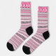 Pink, Grey & White Stripes with White Easter Bunny Socks