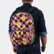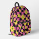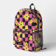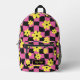 Pink Groovy Daisy Floral Chequerboard Printed Backpack
