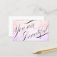 "you are beautiful" inspirational quote in formal calligraphy script on pink lavender gradient background.
