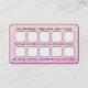 This business card has a chic pink halftone gradient design with sans-serif typography, and features a classic reward system on the back for customers to return to receive something, i.e. discount, free item, etc. Fill in the details with your company name, type of service, phone number, website, address, and qr code, and add store hours, message, and custom reward info on the back.