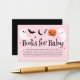 Celebrate your halloween baby shower with this charming pink "Books for Baby" enclosure card. Perfect for spooky baby shower ideas, it adds a sweet touch to your halloween themed baby shower ideas. Whether you're planning a baby is brewing shower or looking for little boo baby shower ideas, this card fits all. Ideal for a baby brewing shower ideas setup, witch baby shower ideas, or just cute halloween baby shower ideas, it’s a lovely way to say a little boo is almost due and a baby is brewing!