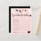 Celebrate your halloween baby shower with this adorable "Wishes for Baby" game featuring a pink spooky theme! Perfect for halloween baby shower ideas, this sweet activity fits halloween themed baby shower ideas and little boo baby shower ideas. Whether you're planning a spooky baby shower or exploring witch baby shower ideas, this card is a cute keepsake. A little boo is almost due, and a baby is brewing! Great for a baby is brewing baby shower ideas, baby is brewing shower ideas, and baby brewing shower ideas.