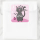 Pink Halloween Black Cat Girl Baby Shower Square Sticker