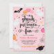 Ghouls Jut Wanna Have Fun! A Pink Halloween themed birthday party invitation. Featuring adorable spooky ghost and pumpkin illustrations.
