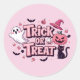 Pink Halloween Trick or Treat design Classic Round Sticker