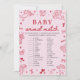 Pink Hand Drawn Baby Animal Match Baby Shower Game Invitation