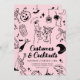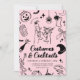 Set the tone for a stylish and spooky adult Halloween party with this black on pink costume & cocktails party invitation. Featuring martini glasses, dancing skeletons, ghosts, and vintage-style illustrations, this elegant template is perfect for Halloween gatherings with a touch of class.