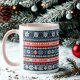 Add a playful twist to your holiday mornings with this ugly Christmas sweater mug, featuring a colourful Fair Isle pattern of snowflakes, reindeer, Christmas trees, and festive geometric motifs in navy, red, white, and pink. The cheerful pink handle and rim make this cup stand out, blending Scandinavian knit style with retro holiday fun. Perfect for anyone who loves funky, kitsch, or unique Christmas décor, this cosy mug is ideal for sipping cocoa, coffee, or tea during the season. A thoughtful gift for Secret Santa, holiday parties, or coffee lovers, this festive snowflake mug brings sweater‑season vibes to every sip and adds a bright pop of colour to your holiday table.