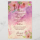 Fresh and youthful style. Cute and elegant floral wedding menu, pink handmade watercolor wild roses on pink watercolor background.