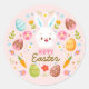 Pink Happy Easter BunnySpring Floral Classic Round Sticker