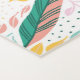 The back pattern features abstract textured pink and white illustration of tropical leaves.