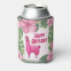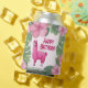 Pink Happy Smiling Lama, this design features a cute and adorable Pink Happy Smiling Lama surrounded by green palm trees and pink tropical flowers.